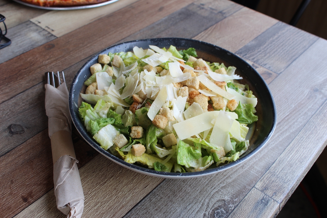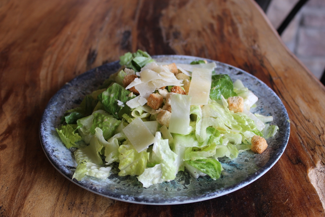 Crisp Romaine, tossed in Caesar dressing, topped with shaved parmesan, and garlic butter croutons.