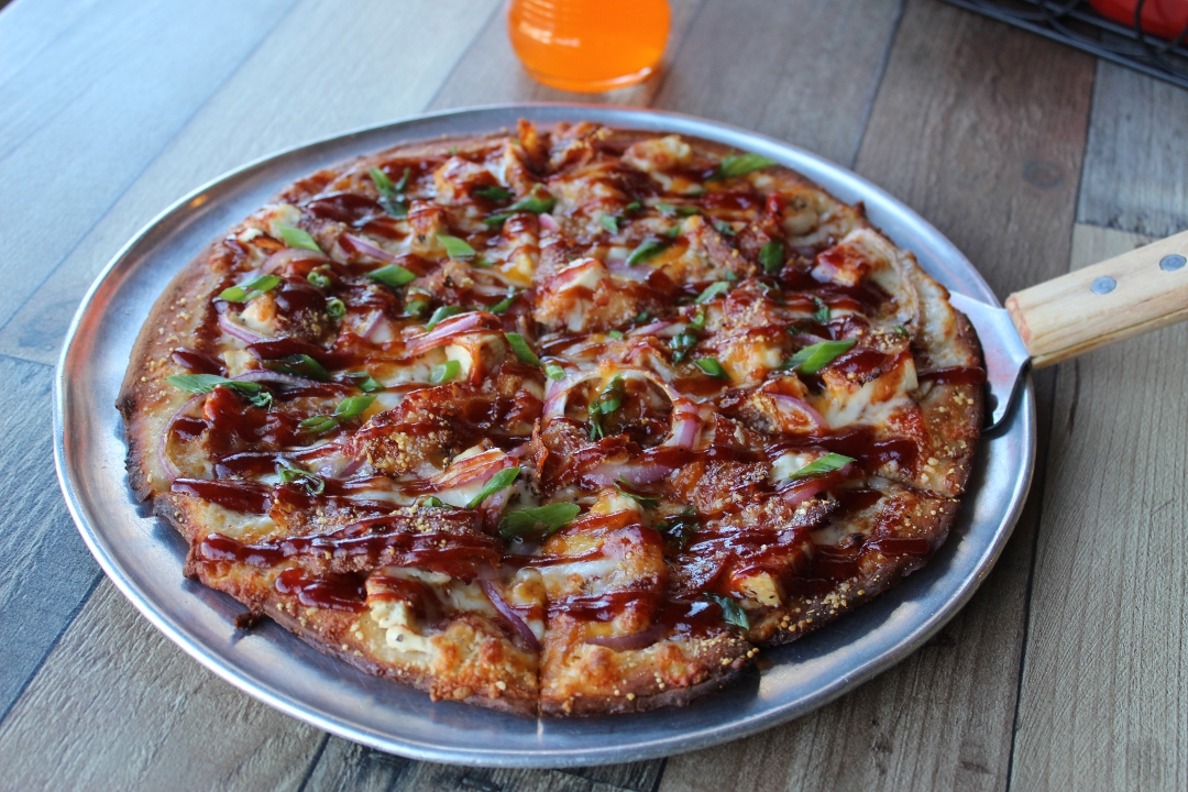 Extra virgin olive oil, roasted garlic, barbecue sauce, bacon, red onions, white cheddar, mozzarella & provolone blend and grilled chicken, finished with pecorino Romano and oregano