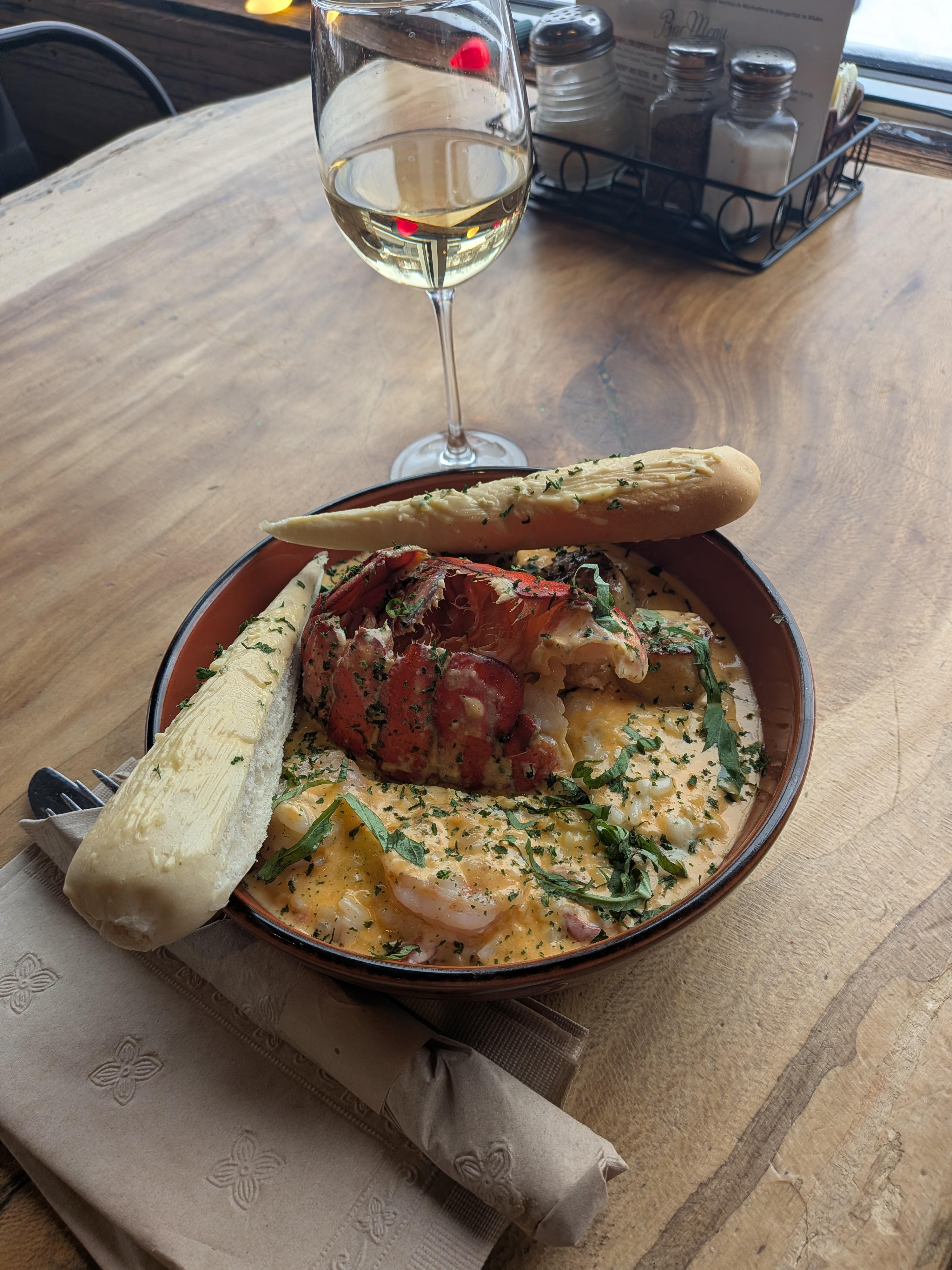 Rotating Risotto, ask your server for the monthly special. Octobers risotto is: Seafood Risotto - Scallops, Shrimp, and Loster Tails, over a creamy bed of risotto.