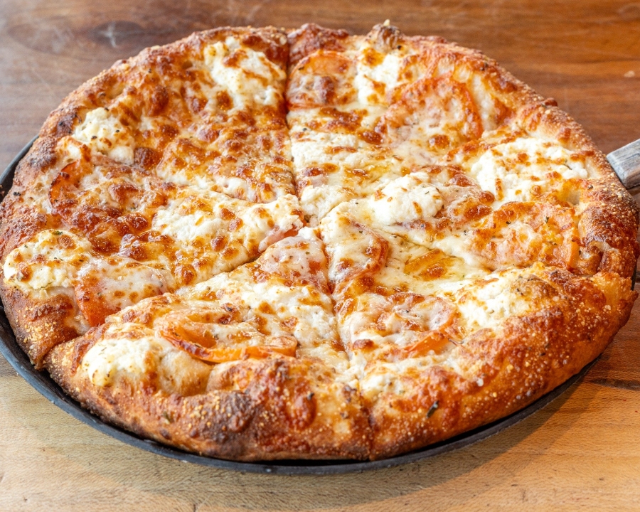 Extra Virgin Olive Oil, Roasted Garlic, Ricotta, Mozzarella & Provolone Blend, Diced Tomatoes, Pecorino Romano, Oregano